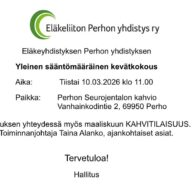 Tule mukaan kuntoilemaan Perhon kuntosalille maanantaisin ja torstaisin kello 15.00 – 16.00.